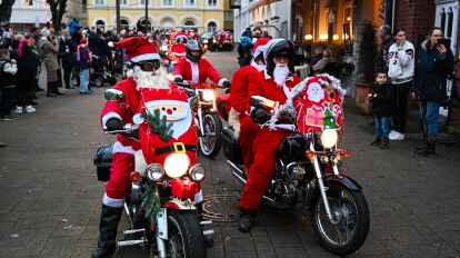 Weihnachtlich geschmückte Motorräder, 35 Nikoläuse und fünf Engel an ihrer Seite fuhren am Sonntag durch Varel. Die Nikolausbiker bereiteten Kindern eine riesengroße Freude. Die Bilder des Tages.